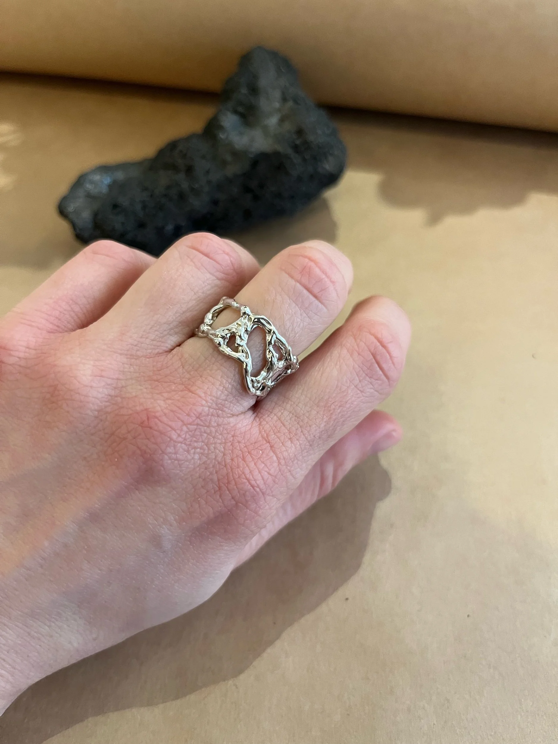 Inspired by the tangled forms of coral branches and the quiet architecture of the reef. Vèra Lagoon was sculpted by hand in wax — its open, interlocking structure captures the feeling of something alive, something found rather than made.